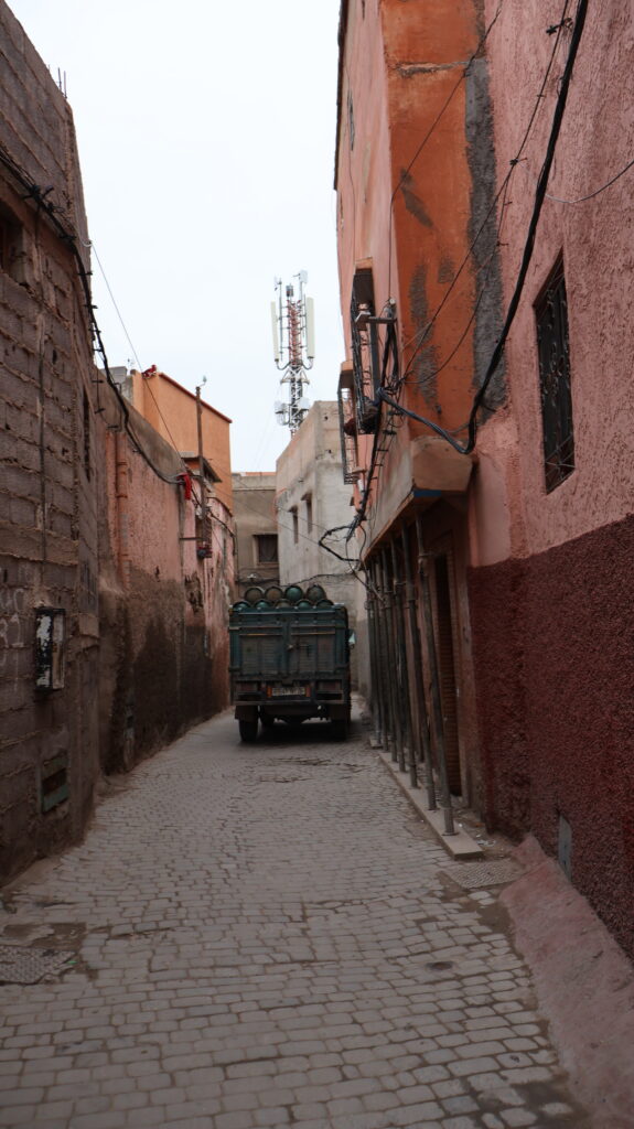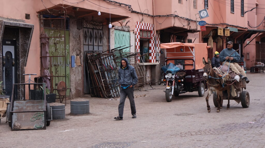 Il traffico in Marocco è pazzesco, sia nelle città che fuori dai centri. A Marrakech, nella Medina è ancora più complicato spostarsi, tra taxi, motorini che sfrecciano a destra e a sinistra, pedoni e navette turistiche.